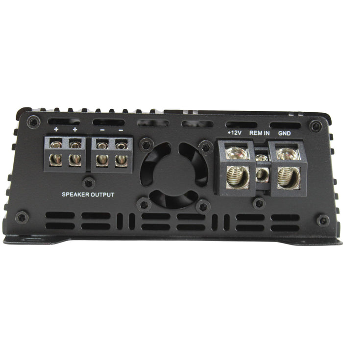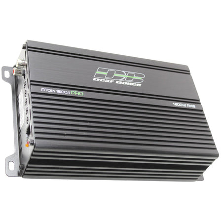 The Deaf Bonce Apocalypse ATOM 1600.1 PRO is a powerful and compact Class D monoblock amplifier designed to deliver exceptional performance for car audio systems. It provides a wide range of RMS power outputs: 550 watts at 4 ohms, 1010 watts at 2 ohms, and 1620 watts at 1 ohm, ensuring versatile and robust sound. The amplifier features a frequency response range from 10 Hz to 250 Hz, allowing for deep bass reproduction. It includes adjustable high-pass (10-50 Hz) and low-pass (40-250 Hz) filters, as well as bass level and frequency adjustments for precise sound customization. With a signal-to-noise ratio of 93 dB, the ATOM 1600.1 PRO ensures clear and distortion-free audio. Its compact dimensions (9 x 5.5 x 2.5 inches) make it easy to install in various locations within your vehicle.