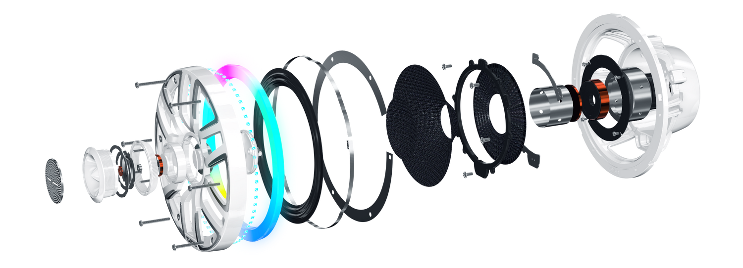 The NVY-M8DC/BK delivers high-performance coaxial sound with a rugged marine-grade build. Designed with a Kevlar cone and bullet tweeter, it produces sharp highs and smooth mids, all protected by an IP65-rated waterproof enclosure.