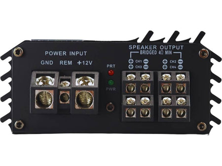 The Sundown Audio HZ-100.4 is a compact 4-channel Class D amplifier from the Horizon Series, engineered for clean, controlled power in tight spaces. Its heavy-duty aluminum heat sink ensures stable performance and efficient cooling during high-output use. Perfect for car audio enthusiasts seeking premium sound and space-saving design.